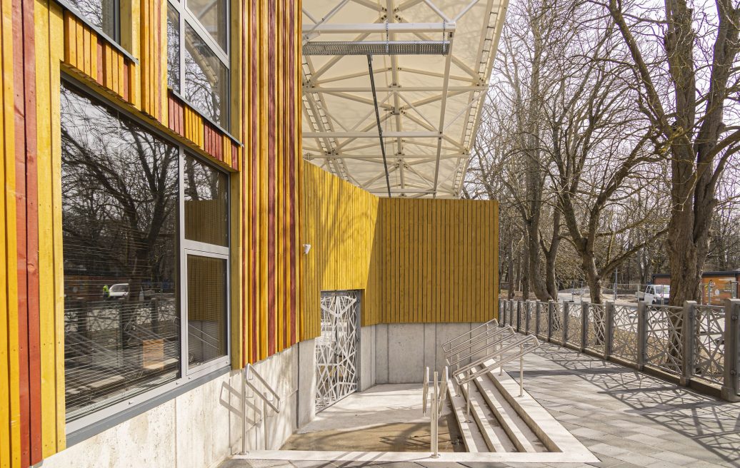 Projekti arhitekti Mikus Lejnieksi juhendamisel ehitati kontserdiaeda akustilistest puitpaneelidest seinte ja kõrgemale tõstetud katusega suurema lava, ehitati uus kahekorruseline garderoobihoone ning vaatajatele rajati mugavam juurdepääsu, lõimides selle Jūrmala pargi kogu territooriumiga. Kunstnikele aga loodi kaasaegsetele nõuetele ja standarditele vastavad mugavad tingimused. Kontserdiaia interjöör loodi vastavalt arhitekt Agris Padelis Līnsi välja töötatud siseruumide ja aiaterritooriumi disainkontseptsioonile.
