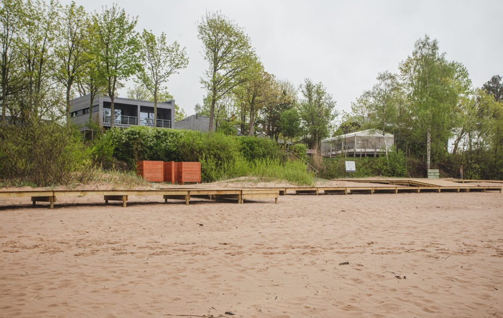Paplūdimyje įrengtos poilsio zonos – deginimuisi, sportui, vaikų žaidimo aikštelės.